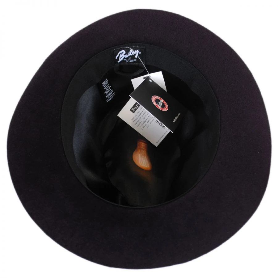 A classic pinch crown fedora hat with a few luxurious touches, the Flume Velour Fur Felt Fedora Hat by Bailey is a sumptuous new offering from Bailey 1922. Trimmed with a smooth leather hat band and removable black side feather, the Flume is simply breathtaking. A fine-woven sweatband and custom printed satin lining complete this hat’s unique look and feel.