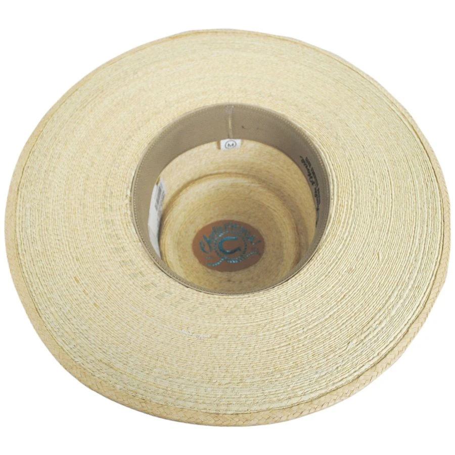 A new and stunning headwear offering from Charlie 1 Horse, the Mamacita Palm Straw Gambler Hat. A tight and attractive braided palm straw body is accented with a seed bead hat band. This hat band is a true celebration of color and is further accented with a concho accent with faux turquoise cabochon and leather embossed feather. Every detail of this hat showcases the expert skill and top quality at Charlie 1 Horse.