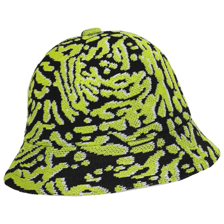 With the Carnival Casual Tropic Bucket Hat – Black/Green from Kangol, you can really go wild! This fun-loving hat features a classic bucket design with a handy down brim and a top button. The main attraction of this hat is the knit abstract pattern, which is so stylish and flashy! This hat is unlined with a comfortable knit sweatband.