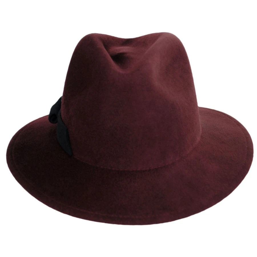 Betmar’s Michele Wool Felt Fedora Hat is a simple and clean cut fedora with a polished felt finish. Made in the USA of 100% wool felt, this hat has a minimalist design, featuring only a unique twist “bow” on left side along with a Betmar side pin. The Michele is unlined and has an adjustable drawstring soft grosgrain ribbon sweatband.