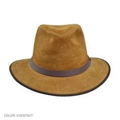 This may be the best value hat on the entire site – an all leather Safari hat, edged in cotton, with a cotton reinforced underbrim for added stability. The Nubuck Leather Safari Fedora Hat has a 4 1/4″ crown, 2 5/8″ brim and comes complete with a leather hat band. It is also lined in satin and comes with the added protection of a cotton sweatband.