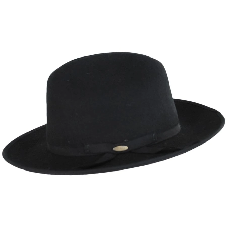 A simple wool felt to mimic the famous open road western, we introduce to you the Zamora Wool Felt Cattleman Western Hat by Scala. The Zamora also features a grosgrain ribbon hat band and has a stiff body. Made in Mexico, this western hat is finished with a grosgrain ribbon binding on the brim.
