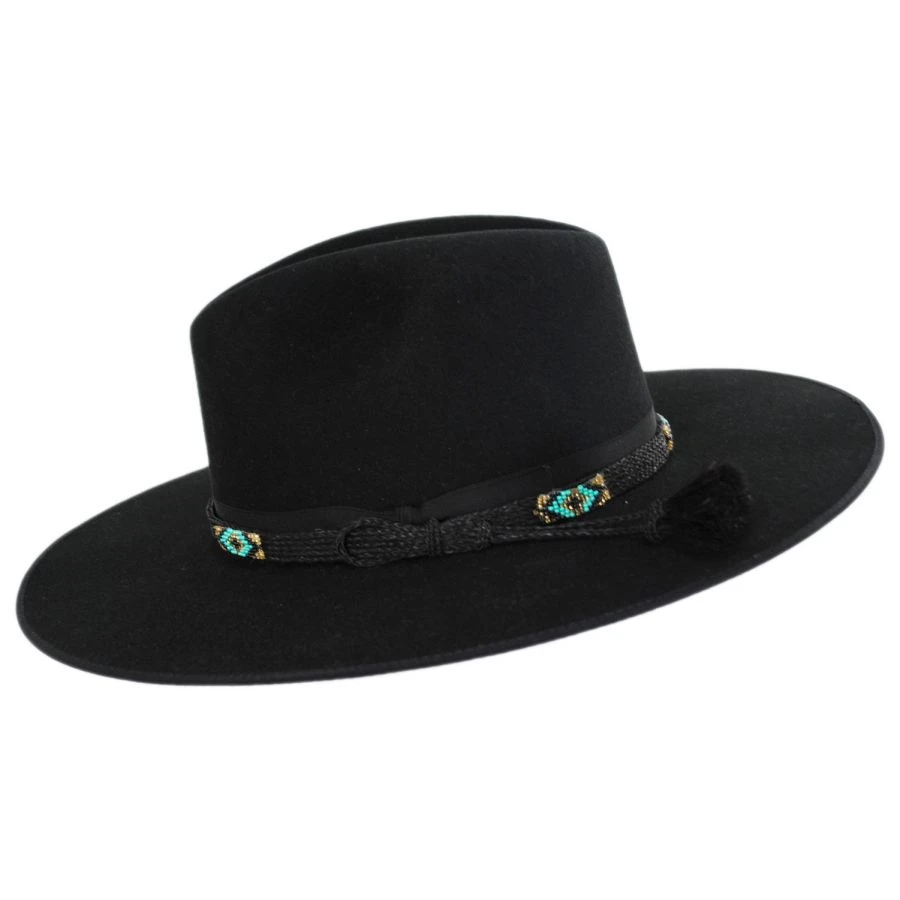 Stetson’s Seeker collection brings to you a celebration of craftsmanship with the Helix Wool Felt Fedora Hat! With a handwoven horsehair and beaded hat band overlaying a grosgrain ribbon, the depth and attention to detail is clearly visible. The horsehair tassels add an extra bit of flair while the faux leather sweatband and satin lining add comfort. The Helix has a stiff body and will elevate any outfit.