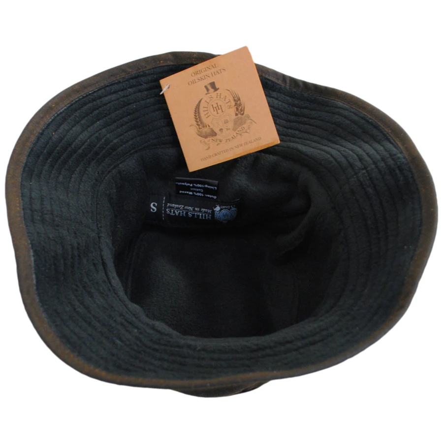 The Storm is a soft crushable crown bucket hat made of Australian oilskin waxed cotton. Water repellent, the hat is designed with self taped external seams and extra soft polar fleece lining for extra warmth.