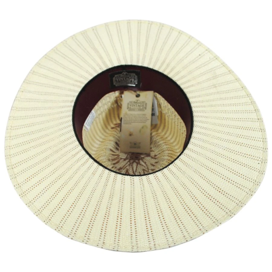 New from Biltmore Vintage Couture, the Diamond Bangora Shantung Straw Fedora Hat! Inspired by playing cards, this fedora features an ultra stiff body and ventilated crown. Wrapped around the crown we have a grosgrain ribbon hat band with a braided leather band overlay. The final touch, a poker chip accent piece!