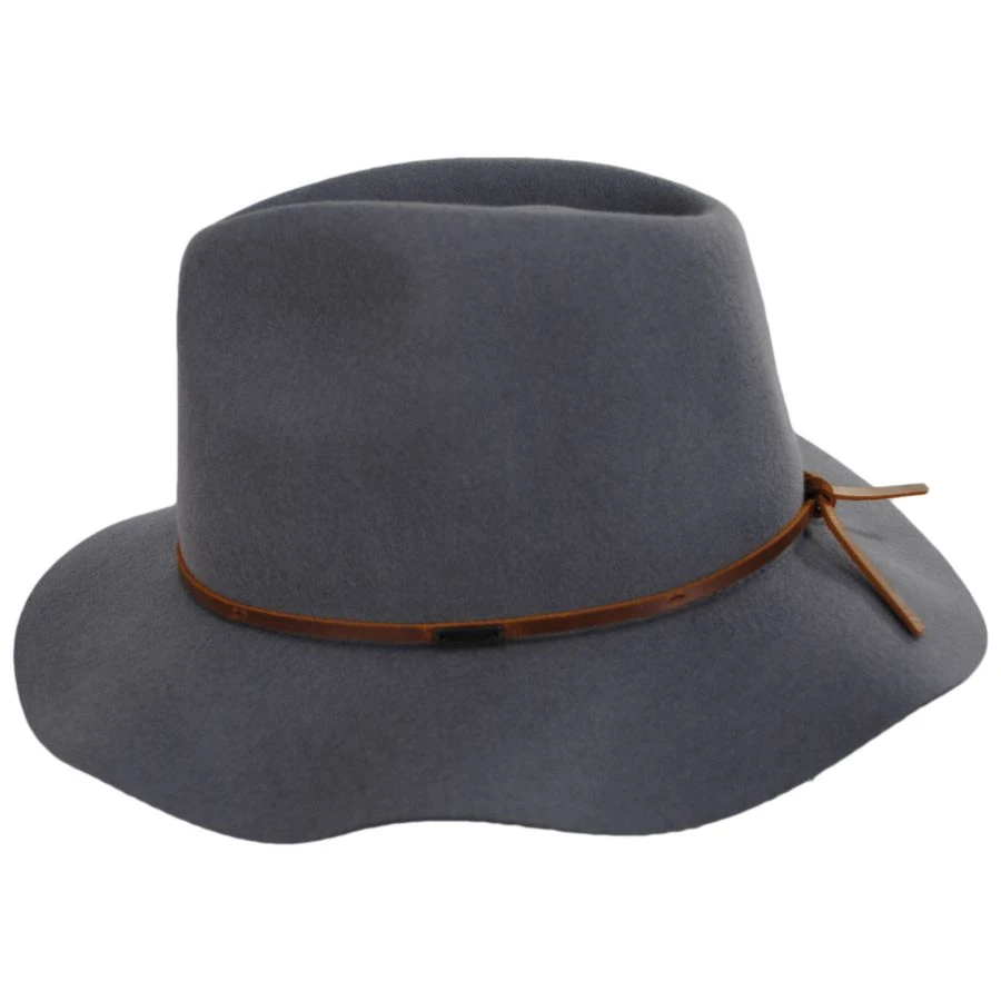 The Wesley Wool Felt Floppy Fedora Hat from Brixton Hats is a modern update to the fedora, while keeping the structural integrity of the classic fedora, Brixton has adorned this piece with a custom leather hat band with additional ties. This hat spells rugged, an adventure is awaiting when placing this hat atop of your head.