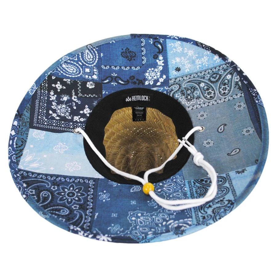 The new Wyatt Straw Lifeguard Hat features their classic straw lifeguard hat body with an bandana patchwork-themed binding on brim, lining and Hemlock sewn patch. An adjustable chin cord adds protection during windy conditions; a stretchy and absorbent sweatband completes the style. Perfect for wearing poolside, at the beach, on a hike or anywhere else the sun shines.